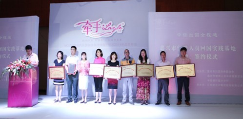 8月18日,“嘉兴市留学人员回国实践基地”授牌仪式在嘉兴汇信集团隆重举行,中共嘉兴市委统战部副部长、市侨办主任浦金英代表嘉兴市侨务部门授予汇信进出口集团股份有限公司等8家企业为嘉兴市第一批“嘉兴市留学人员回国实践基地”,4名从英国、加拿大、法国留学人员代表分别与汇信进出口集团股份有限公司、桐昆集团股份有限公司、茉织华实业(集团)有限公司、嘉兴市南湖金融区建设开发有限公司签约实习。